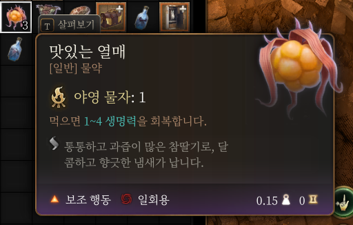 레인저, 드루의 스킬로 얻는 맛있는 열매는 투척으로 사용 불가능함