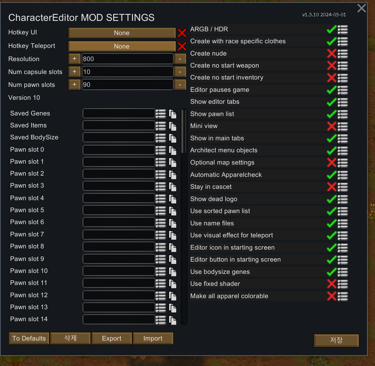 디폴트 캐릭터 에디터 모드 메뉴