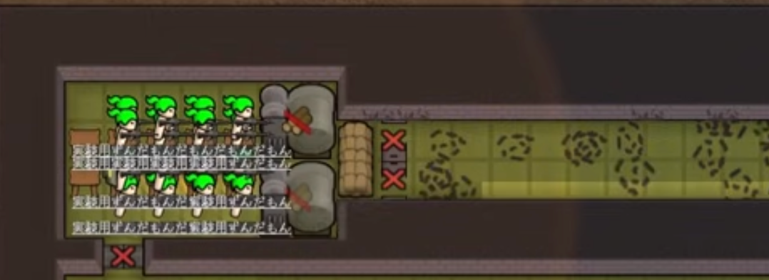 4줄로 선 림들이 가운데로 겹쳐서 사격 가능