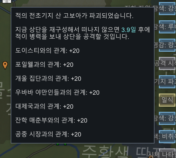 적대 세력 (-100 고정) 기지 부수면 얻는 것