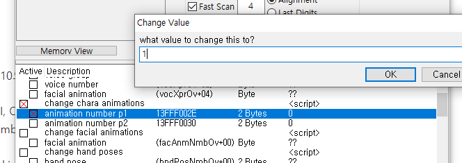 animation num p1 에 0 에서 1 입력 후 ( 캐릭터 누움 ) 다시 0 입력하면