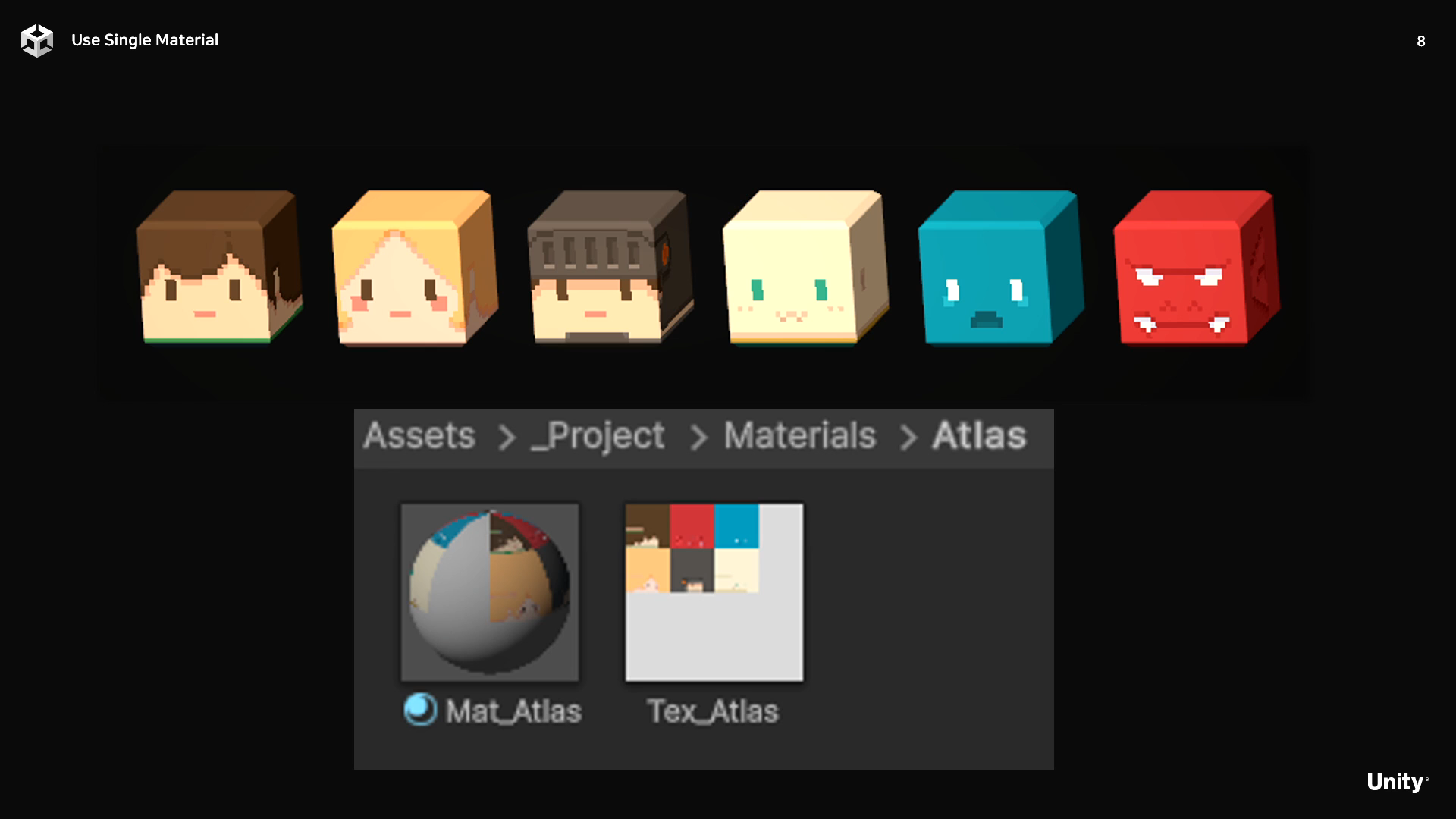 각 머티리얼 달라도 (아틀라스 안 써도) 최적화가 되는 모습