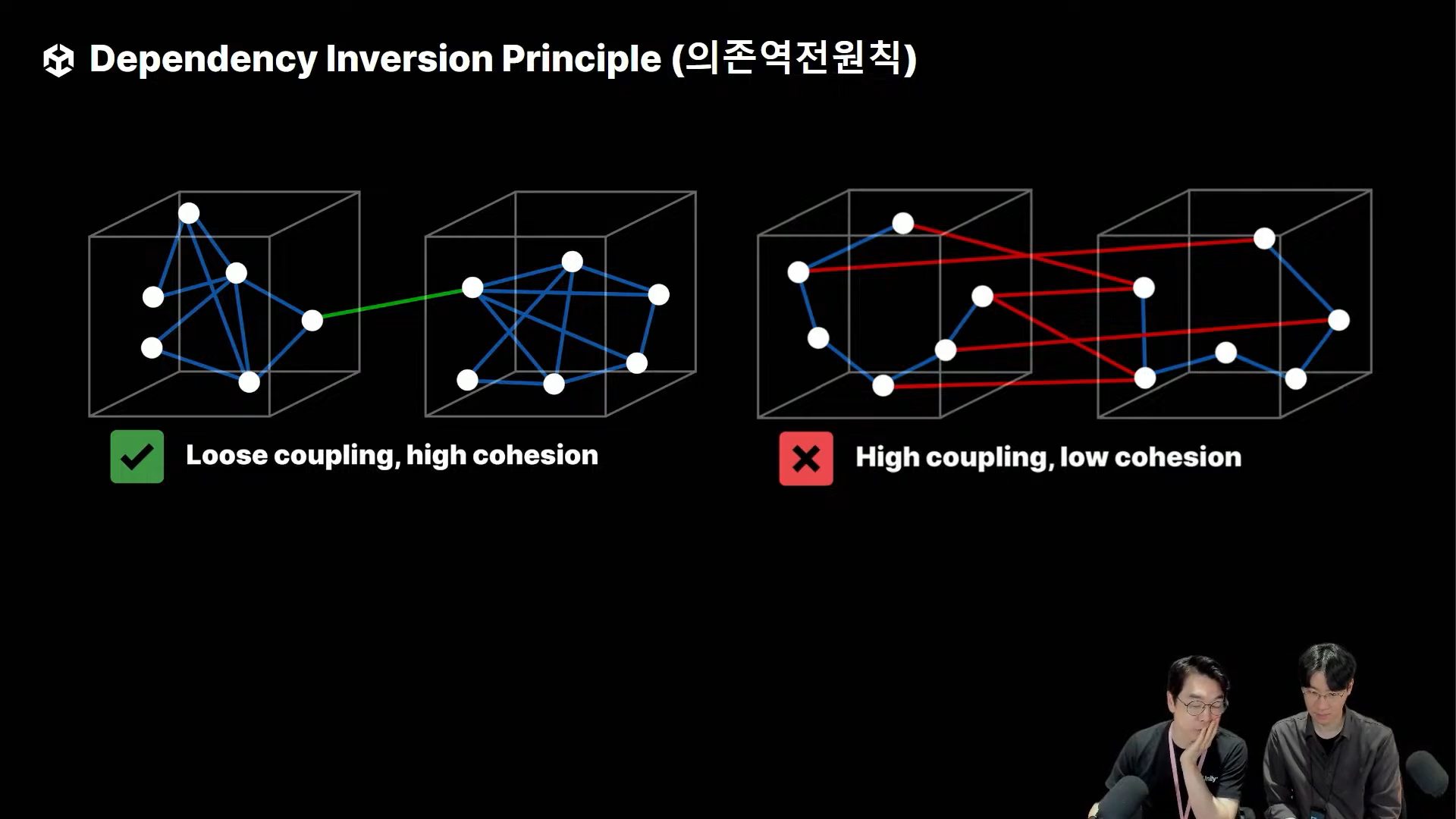 이렇게 서로 꼬여져 있는 걸 결합, coupling 이라고 함